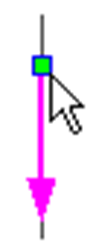 Modification de l’angle et de l’intensité avec le curseur d’extrémité carré. Toutes les forces sélectionnées sont modifiées de la même rotation que la force utilisée pour le contrôle et leur amplitude varie proportionnellement à l’amplitude de celle-ci. Si on presse la touche Ctrl pendant le déplacement, seul l’angle est modifié ( intensité constante). Si on presse Shift (majuscules) pendant le déplacement, seule l’intensité est modifiée ( ligne d’action inchangée). |